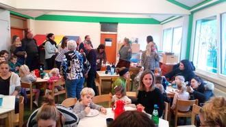 Viele Eltern und Kinder sind gekommen um Frau Schon zu verabschieden.