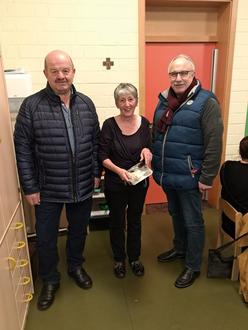 Die Ortsbürgermeister Peter Reichertz und Günter Kirsch wünschen Frau Schon alles Gute.