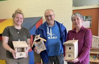 v.l.n.r. 1. Vorsitzende des Wildtier- und Naturschutzvereins Auw a. d. Kyll Laura Ewen, NABU Mitarbeiter Peter Brixius, Leiterin des St. Rochus Kindergarten Orenhofen Petra Schon