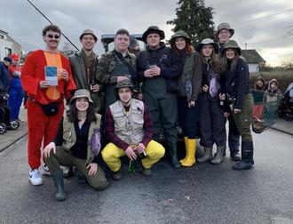 Die Lappenbande als Angler - Gruppe von Preister Jugendlichen mit ihrem Premierenkarnevalswagen