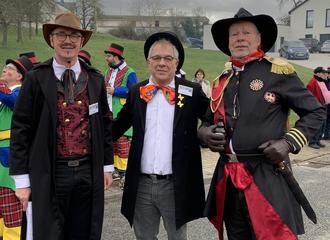 Zugleitung durch Bürgermeister Dr. Edgar Haubrich und den Beigeordneten Hans-Peter Schmitz und der alljährliche Zugbegleiter Herbert Schmitz Fotos: Hans-Peter Schmitz