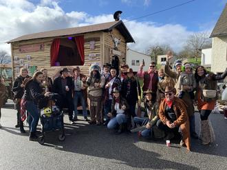 AH Preist als Toreros mit einem tollen Stier auf dem Motivwagen