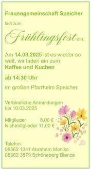 Bei Interesse bitten wir um Anmeldung bis zum 21.03.2025 bei Marlies Plein unter der Tel Nr. 06561 604669 oder Email: marlies.plein@gmx.de.