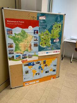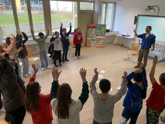 Vergangene Woche fand für die beiden 5. Klasse der Erbeskopf-Realschuleplus in Thalfang Unterricht einmal anders statt. Mit dem Projekt „France Mobil“, das vom Institut Français gefördert wird, war der Muttersprachler Hugo Guenser für einen Vormittag zu Besuch, um auf spielerische Art und Weise den Jüngsten der Schulgemeinschaft die französische Sprache näher zu bringen und das Interesse hierfür zu wecken. Der 25-jährige Franzose, der Schulen in ganz Rheinland-Pfalz und dem Saarland besucht, hat bereits Erfahrung darin, Schüler*innen für seine Sprache zu begeistern. Für die Fünftklässler*innen bot der Französischunterricht eine gelungene Abwechslung. Zu Beginn wurden den Schüler*innen mit Hilfe eines Würfelspiels beigebracht, sich in Französisch vorzustellen. Zudem bekamen sie einen Einblick in die französische Sprache und Kultur. Alles in allem war der Vormittag eine gelungene Sache. Die Schüler*innen beteiligten sich mit Begeisterung an den Spielen und Übungen. Zum Abschluss bedankte sich Französischlehrerin Frau Susanne Denis noch mit einem „merci et avec plaisir“ bei „France Mobil“ und insbesondere bei Hugo.