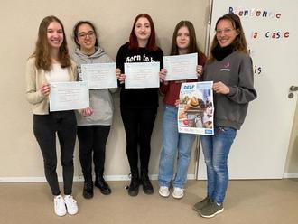 Im Juni 2022 haben 4 Schülerinnen der Erbeskopf-Realschule plus in Thalfang die DELF-Prüfung erfolgreich abgelegt - nun sind die DELF-Diplome des Institut Français eingetroffen. Die Schulleitung der Erbeskopf-Realschule plus und ihre Französischlehrerin, die die Teilnehmerinnen auf die Prüfungen vorbereitet und zu der mündlichen Prüfung begleitet hat, Frau Denis gratulieren herzlich!