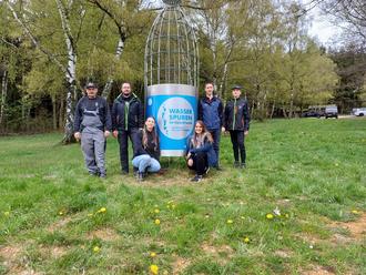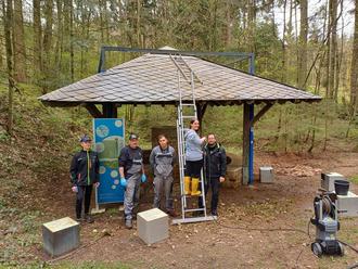 Vergangenen Freitag, haben Mitarbeiterinnen und Mitarbeiter der Hochwald-Sprudel Werke gemeinsam mit der Tourist-Information Thalfang angepackt und die Stationen am Mineralwasser-Erlebnispfad im Haardtwald gesäubert. Insbesondere die Haardtwald-Quelle erfuhr dabei eine Grundreinigung vom Fundament bis zum Dach.