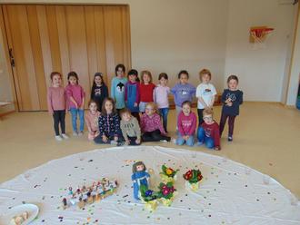 Die jüngsten Kinder der Kita trafen sich ebenfalls zum Osterprojekt. Auch dort wurde die Osterbotschaft auf altersgerechte Art erarbeitet und spielerisch thematisiert.