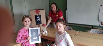 Zu guter Letzt erschien noch „Patient Erwin“ ( eine anatomische Puppe) zur Untersuchung. An ihm haben uns die Ärztinnen genau gezeigt, wie in etwa unsere inneren Organe aussehen und wo genau diese in unserem Bauch zu finden sind. „Schon sehr erstaunlich, wie es in uns so aussieht“, meinten die Kinder.