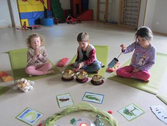 Der Besuch bei Momo, der Yogakatze, ist fester Bestandteil unserer Konzeption. Auf der Insel „Fühl mich wohl“ erfahren die Kinder, wie sie selbst Kraft in der Achtsamkeit und Ruhe finden können. Der Förderverein hat uns dafür ein wunderschönes Klangspiel und Klangschalen sowie Affirmationskarten finanziert.