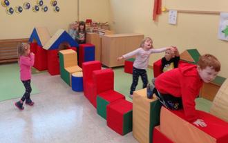 Die Kinder können nun mit dem erweiterten Sortiment an Weichbausteinen noch interessantere Gebilde bauen, vor allem der große Kreis ist sehr beliebt.