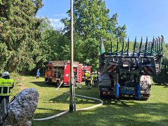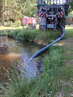 Das benötigte Wasser wurde durch den Landwirt mittels Güllefass aus einem Weiher gepumpt und zur Einsatzstelle gebracht.