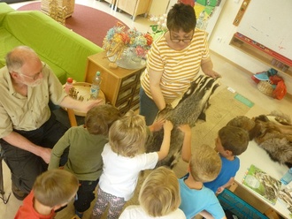 Begonnen hat Frau Heine mit dem Thema Wolf. Begleitet hat sie dabei Herr Zimmermann, Förster im Ruhestand.