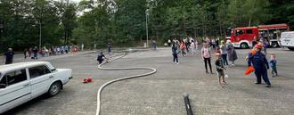 Neben Wasser- und Geschicklichkeitsspielen bei schönem Wetter, waren unter anderem viele Kinder begeistert, erstmalig mit einem Feuerwehrauto mitfahren zu dürfen.