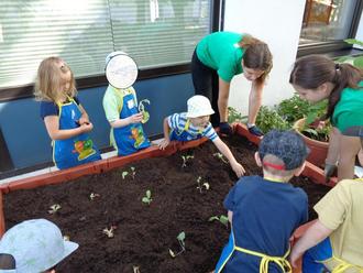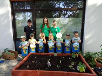 Einige Kinder vom Kindergarten Regenbogen durften auch dieses Jahr wieder unser Hochbeet gemeinsam mit dem Edeka-Team bepflanzen.