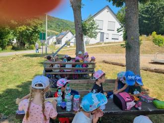 Am 07. Juli fand die traditionelle Übernachtung unserer Vorschulkinder statt. Das Übernachten kurz vor dem Übergang in die Grundschule ist eine Art symbolischer Abnabelungsprozess und ein absolutes Highlight für die Kinder, dem mit großer Freude und Aufregung entgegengefiebert wird. Die Kinder hatten viel Spaß bei gemeinsamen Aktivitäten, wie dem Wandern zur Krackesmühle und wieder zurück. Dort gab es leckere Pommes, eine Abkühlung im Grundbach und Ziegen, die sie fütterten. Wieder zurück in der Kita, besuchten uns zwei Alpakas.