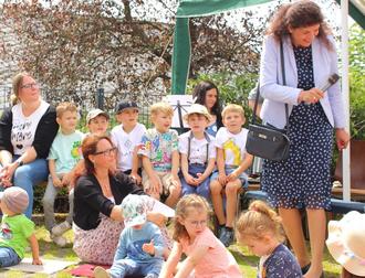 Anlässlich des 30-jährigen Bestehens der Kita haben die Kinder der Kita Zwergenstübchen mit ihren Eltern und den Erzieherinnen zum Tag der offenen Tür geladen. Der Wettergott hat es gut mit uns gemeint, so, dass rund um die Kita gefeiert werden konnte.