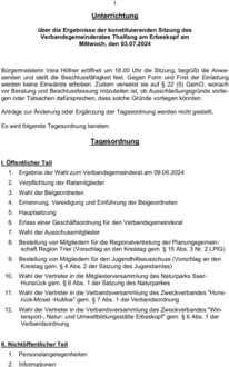| 6. | Erlass einer Geschäftsordnung für den Verbandsgemeinderat |