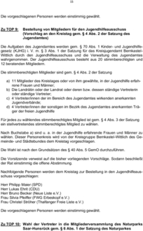 | Zu TOP 9: | Bestellung von Mitgliedern für den Jugendhilfeausschuss (Vorschlag an den Kreistag gem. § 4 Abs. 2 der Satzung des Jugendamtes) |