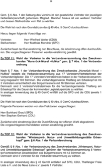 | Zu TOP 10: | Wahl der Vertreter in die Mitgliederversammlung des Naturparks Saar-Hunsrück gem. § 6 Abs. 1 der Satzung des Naturparkes |