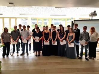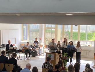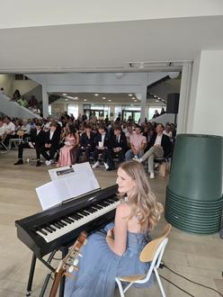 Musikalisch begleitet wurde die Feier von Romy Brenner mit einem Klavierstück von Ludovico Einaudi und von den Schüler/innen des „Musik-Projekts“ begleitet von Herrn Fransen.