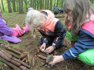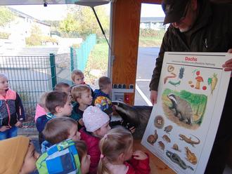 Und bald schon ging es zur Waldwoche. In der Natur konnten wir uns noch intensiver als Gruppe finden. Wir verbrachten 1 ganze Woche ausschließlich im Wald, lernten Trolle und Waldgeister kennen, bauten Allerlei und fühlten uns rundum wohl. Auch der tägliche Marsch dorthin war immer wieder herausfordernd und aufregend. In diesem Zusammenhang besuchte uns Herr Altmaier mit dem Waldmobil. Wir lernten unsere heimischen Tiere besser kennen und erfuhren viel Interessantes über sie.