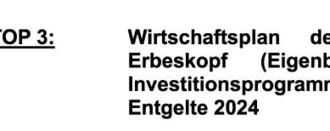 | TOP 3 | Wirtschaftsplan der Verbandsgemeindewerke Thalfang am Erbeskopf (Eigenbetrieb) für das Wirtschaftsjahr 2024, Investitionsprogramm 2023 -2027, Kalkulation und Festsetzung der Entgelte 2024 |
