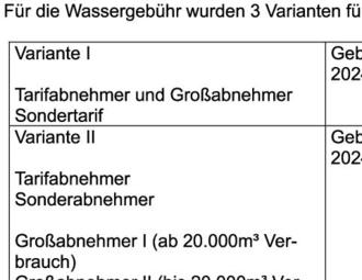 Im Betriebszweig Wasserversorgung ist es erforderlich die laufenden Entgelte anzupassen. Für den Kostenträger Wasserversorgung werden als laufende Entgelte Gebühren und wiederkehrende Beiträge erhoben. Gem. § 12 Abs. 3 der Entgeltsatzung Wasserversorgung vom 17.12.2015 werden von den entgeltsfähigen Kosten 25 % als wiederkehrender Beitrag erhoben. Somit ergeben sich folgende neue Beitragssätze: