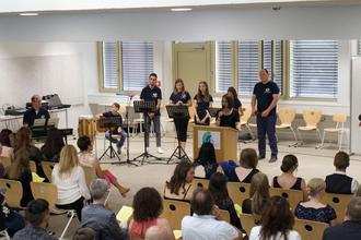 Mit dem treffenden Liedtitel „Hoch“ beschloss die Schulband die gelungene Feier.