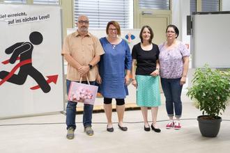 Mit einem großen Dank verabschiedeten Schulleiterin Frau Becker und Elternsprecherin Frau Stüber den stellvertretenden Elternsprecher, Herrn Lukas, und Frau Ludwig aus dem Elternbeirat der Schule, in dem sich beide während der kompletten Schulzeit ihrer Kinder engagiert hatten.