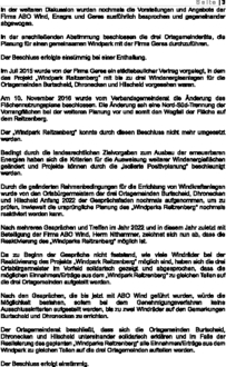 Zu TOP 2: Grundsatzbeschluss zur Errichtung eines gemeinsamen Windparks auf dem Reitzenberg