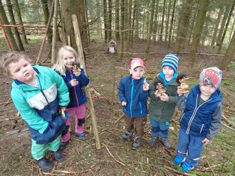 Schlaufüchse: „Im Zahlenwald bei der Zahl 5 fanden wir die Troll-Familie Troll-Papa, Troll-Mama, Lille-Ollebolle, Lulle-Ollebolle und den Wichtel Tomte und sangen das Lied von den Trollen im Peterswäldchen.“