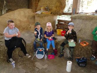 Schlaufüchse: „Wir waren bei der Firma Lubig, und auf dem Bauernhof der Familie Klein habe ich die Kühe gefüttert.“ „Mir hat es gefallen die Kühe zu füttern.“ „Das Frühstücken mit Trinkpäckchen fand ich toll.“ „Bei der Firma Lubig haben wir die Roboter angeschaut, die komplette Firma und die Popcornmaschine.“ „Das wir Rucksäcke bekommen haben, fand ich toll.“ „Es war einfach schön, wie wir uns die Sachen angeschaut haben.“