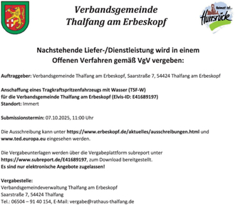 Tel.: 06504 – 91 40 154, E-Mail: vergabe@rathaus-thalfang.de
