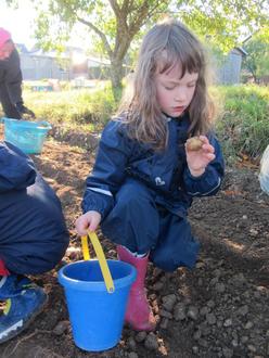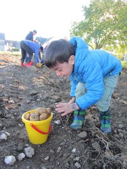 Jeder durfte zum Andenken eine Kartoffel, die er geerntet hat, mit nach Hause nehmen. Außerdem bekamen wir als Lohn für die Hilfe frisch geerntete Kartoffeln für die Kita, aus denen wir nun etwas Leckeres zubereiten können.