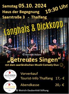 Seit mittlerweile über 30 Jahren unter dem Namen Langhals & Dickkopp haben sie immerhin 19 Bühnenprogramme geschafft, haben neun CDs produziert und sind regelmäßiger Bestandteil der Comedy-Abteilung im Radioprogramm von SR3 Saarlandwelle.