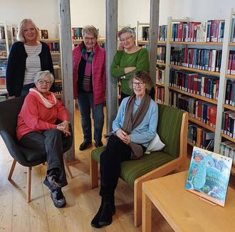 Das ehrenamtliche Team, v. l. Frau Rita Jungbluth, Frau Marlies Ronde-Feuchtner, Frau Brunhilde Thelen, Frau Barbara Koltermann, mit der Leiterin der VG-Bücherei, Petra Schmidt 1.v.l.