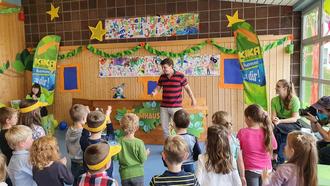 Als endlich die Sieger bekanntgegeben wurden konnten wir es alle gar nicht glauben. Doch es war wirklich wahr: Moderator Juri und Fledermaus Fidi werden zu uns nach Malborn kommen und eine große Party mit uns feiern.