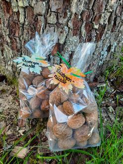 Da unser Erntejahr sehr reich ausgefallen ist - die Kita hat zwei Walnussbäume auf dem Spielplatz und die Kinder waren sehr fleißig beim Sammeln – bietet der Elternausschuss und die Kinder unsere „Zwergen-Nüsse“ gegen eine kleine Spende an. Die Nüsse werden in unserem Dorfladen bereitgestellt, Sie können sich gerne bedienen!