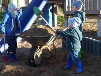 Am Samstag, dem 22.10.2022 fanden sich große und kleine Menschen der Kindertagesstätte und der Gemeinde Berglicht zusammen, um gemeinsam das Außengelände des Kindergartens zu einem Ort zu machen, der zum Spielen einlädt, wo sich die Kinder wohlfühlen, sie schattige Plätzchen finden und die Natur im jahreszeitlichen Wandel erleben können. Ehrenamtliche und fachliche Unterstützung erhielten sie dabei von Landschaftsgärtner Kim Jakobs.