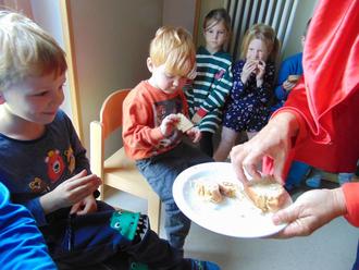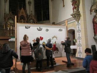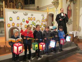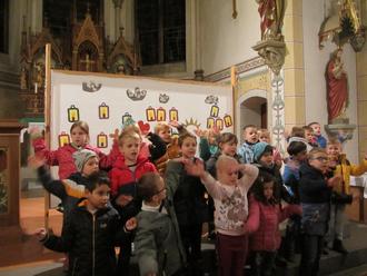 Dass jeder von uns ein bisschen so wie Martin sein sollte, stellten die Vorschulkinder - die Zahlenmonster - mit einem Klangtheater eindrucksvoll im sehr gut besuchten ökumenischen Gottesdienst am Martinstag dar. In der Inszenierung sowie jeder gesprochenen Fürbitte wurde deutlich, dass es wichtig ist, auf Andere zu achten und zu erkennen, wenn jemand Hilfe und/oder Zuwendung benötigt. Denn man kann Vieles teilen, wie auch schon die Kinder wissen: Essen, Liebe, Freundschaft, Spielsachen und und und. Dazu kommt, dass dies sinnerfüllt ist und dem Teilenden ein wohliges und gutes Gefühl gibt. Dies wurde in den letzten Wochen in den Kitas intensiv mit den Kindern thematisiert und erlebt, z.B. indem wir eine riesengroße, selbstgebackene Brezel mit allen Kindergartenkindern teilten.