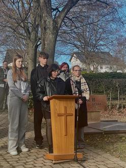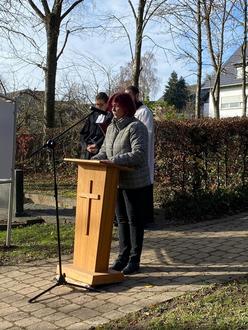 In ihrer Ansprache betonte Bürgermeisterin Tamara Breitbach: „Nur durch die greifbaren Geschichten von unseren Nachbarn, unseren Großvätern und Großmüttern, aber auch von den Menschen aus Syrien und der Ukraine, denen wir hier aktuell Schutz bieten, können wir der Menschlichkeit mehr Raum geben als Krieg und Gewalt.“