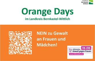 Weitere Informationen zu Veranstaltungen zu den Orange Days Bernkastel-Wittlich auf der Internetseite www.Bernkastel-Wittlich.de, Per E-Mail: gabriele.kretz@bernkastel-wittlich.de oder telefonisch. 06571-14 2255. Veranstaltungsflyer online oder in Papier liegen in der Verwaltung aus.