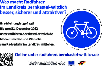 Helfen Sie uns dabei, die Fahrradinfrastruktur im Landkreis Bernkastel-Wittlich zu verbessern und das Radfahren im Alltag attraktiver und sicherer zu machen! Wir freuen uns auf Ihre Hinweise!