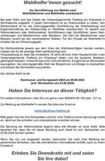 Zur Meldung als Wahlhelfer*in senden Sie bitte eine Email an