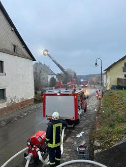 Im Einsatz waren neben der FFw Bäsch, auch eine Gruppe der FFw Thalfang, die mit einem Tanklöschfahrzeug und der Drehleiter den Einsatz unterstützten. Die beiden Fahrzeuge wurden im Schwerpunkt zur Brandbekämpfung des Scheunendachs und zur Ausleuchtung der Einsatzstelle eingesetzt.
