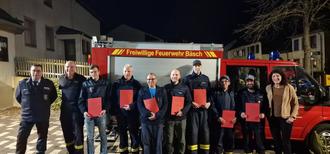 Nevio Brückner, Mark Klein und Tobias Klein wurden zum Feuerwehrmnn, Luis Melcher zum Oberfeuerwehrmann und Karl-Rudolf Pfeiffer, Philipp Edelmann und Uwe Edelmann zum Löschmeister befördert.
