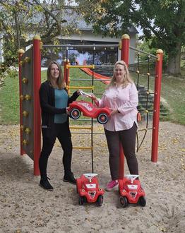 Die Kinder und das Team der Kita Regenbogen bedanken sich herzlich bei der Sparkasse Mittelmosel-Eifel Mosel Hunsrück für die Spende der neuen Bobby Cars!