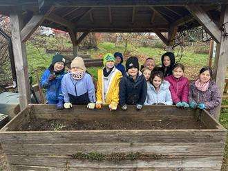 Dem winterlichen Wetter trotzend wurde auch im Schulgarten regelmäßig gearbeitet. Mit viel Eifer haben wir den Garten gepflegt, die Beete auf den Winter vorbereitet und Frühblüher eingepflanzt.