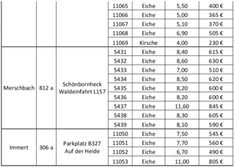 Die Versteigerung beginnt um 09.30 Uhr am Waldparkplatz oberhalb des Sportplatzes Thalfang. Es wird Laubholz aus den Gemarkungen Gielert, Merschbach und Immert versteigert.