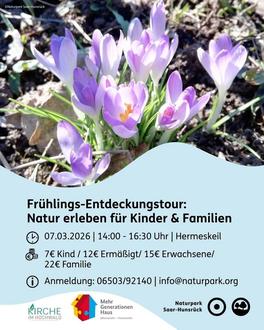 Der Naturpark Saar-Hunsrück lädt in Kooperation mit dem Mehrgenerationenhaus Hermeskeil am Samstag, den 7. März, von 14:00 bis 16:30 Uhr, Kinder und Familien zu einer spannenden Entdeckungsreise in der Natur ein.